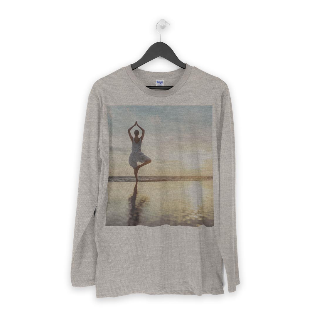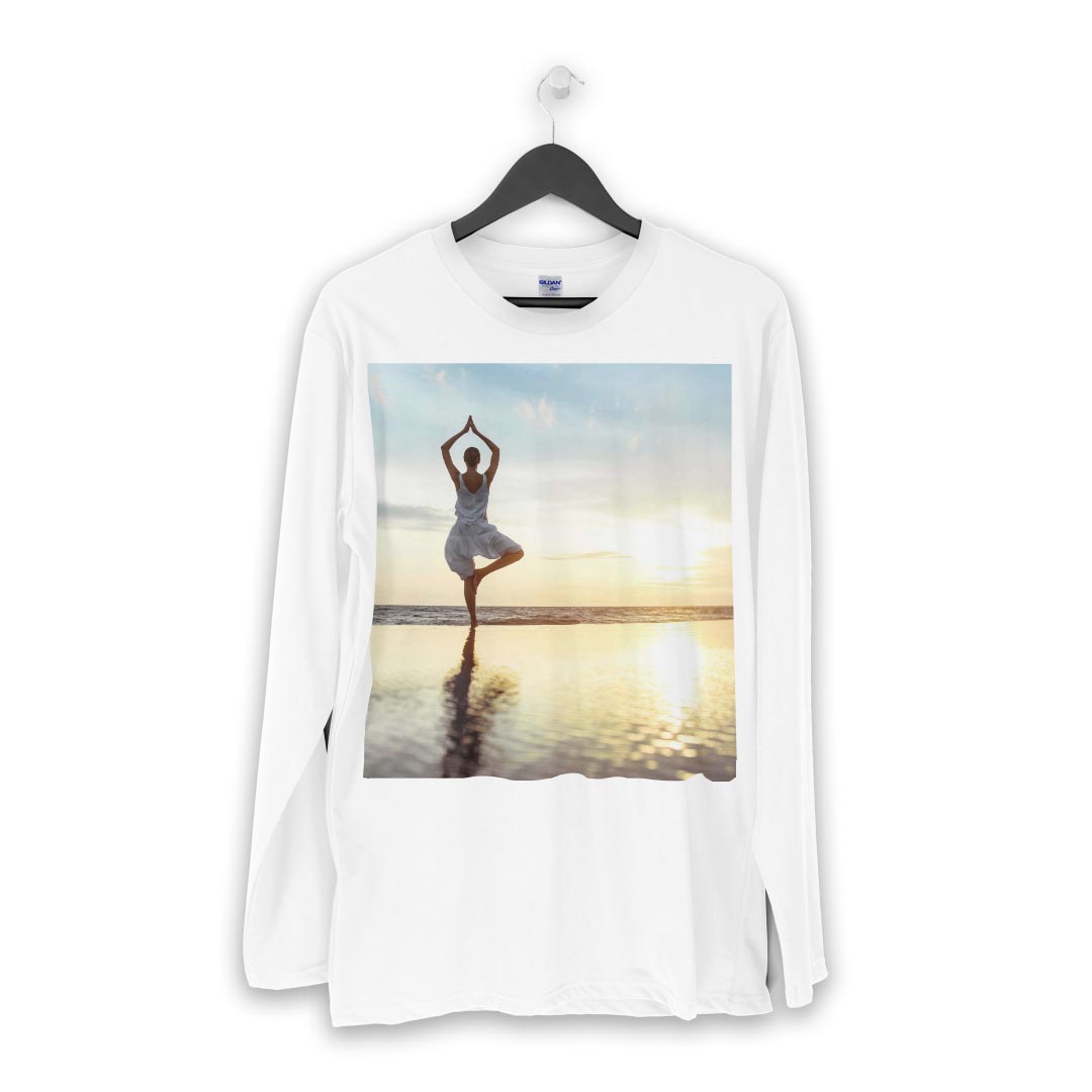 ロング tシャツ メンズ 長袖 ホワイト グレー デザイン XS S M L XL 2XL Tシャツ ティーシャツ T shirt long sleeve 014897 景色 海 ヨガ 運動 夕日